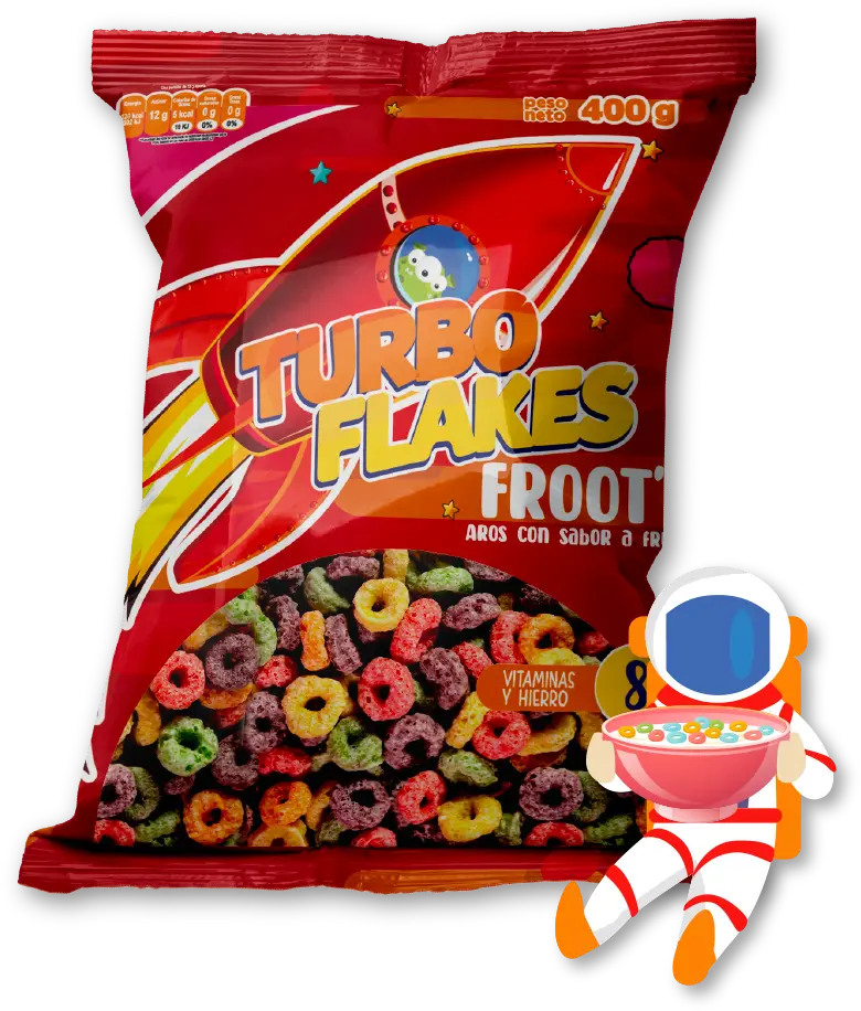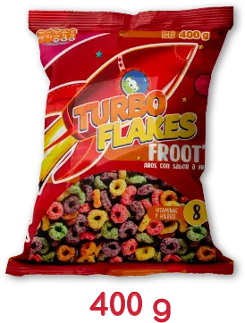 Turbo Flakes contiene 0 g de grasas trans, 0 colesterol y te proporciona 8 vitaminas esenciales
